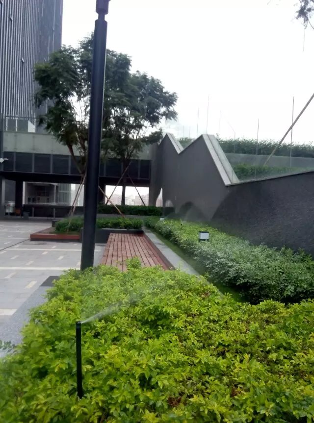 下圖為華為在天安云谷的辦公場(chǎng)所,其樓前草坪及樓層平臺(tái)綠化灌溉均采用了亨特灌溉系統(tǒng)。