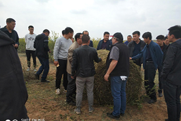 4月24日,綠友集團(tuán)引進(jìn)的中國首臺加拿大安德森硬桿打捆機(jī),前往寧夏吳忠市鹽池縣、紅寺堡區(qū)等地做檸條平茬收割演示。