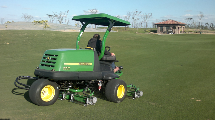 為打造頂級錦標(biāo)賽事球場,從設(shè)計(jì)建造至今,覽海國際高爾夫俱樂部配備了綠友提供的草坪養(yǎng)護(hù)設(shè)備,一應(yīng)俱全。高端上檔次的配置,為日后草坪的養(yǎng)護(hù)提供了堅(jiān)強(qiáng)的保障,其中美國迪爾公司的8000E混合動(dòng)力坐騎式五聯(lián)球道剪草機(jī)就成了其中的一大“功臣”。18英寸QA5刀組,兼?zhèn)湎冗M(jìn)的油電混合技術(shù),起早摸黑,征服了連綿起伏的球道,贏得了俱樂部草坪總監(jiān)及其團(tuán)隊(duì)的一致肯定。馳騁美巡,盼其再續(xù)輝煌征程。