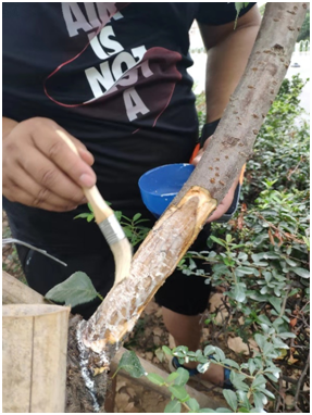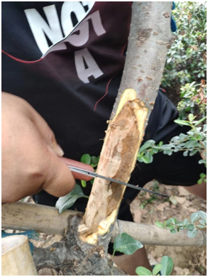 將腐爛的樹(shù)皮刮掉,刮干凈腐爛部分,露出正常組織。