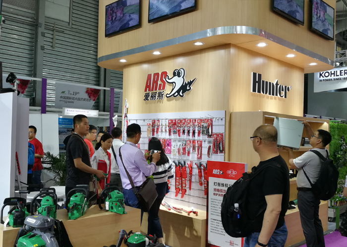 設備展示區(qū)更是吸引了眾多專業(yè)觀眾的眼光,綠友集團展示了自主研發(fā)、生產(chǎn)以及代理的剪草機、打藥機、灌溉系統(tǒng)、冷霧系統(tǒng)、電動車輛、粉碎機、無人機、園藝工具、植保用品等十多種產(chǎn)品。期間,綠友集團展位上一直人潮涌動,自產(chǎn)設備引來諸多關(guān)注。有問粉碎機的,有了解大型零轉(zhuǎn)彎剪草機的,有被冷霧系統(tǒng)所吸引的,有圍觀無人機的,更有很多觀眾現(xiàn)場購買愛麗斯園藝工具。綠友工作人員不知疲倦地解答著各種各樣的問題,也收獲了大量訂單。