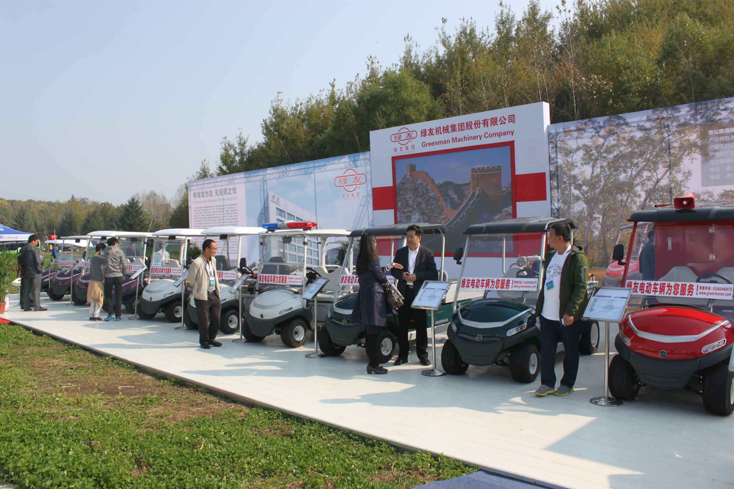 此次森林旅游節(jié)期間全國各省市設立了大型展臺展示推薦各自省份森林旅游資源和招商引資項目。與林業(yè)和旅游業(yè)行業(yè)密切相關的企業(yè)全方位展示公司形象和產(chǎn)品。以“圍繞綠色做文章,圍繞綠色謀發(fā)展”的綠友集團盛裝參展,展臺面積280平方米,展品包括林業(yè)樹木處理設備、草坪養(yǎng)護設備及Greenman 全系電動車輛登臺亮相。綠友集團的展臺及高品質(zhì)產(chǎn)品引人駐足,蒞臨展位的各級領導仔細了解產(chǎn)品特性和功能,并在展臺表達了合作意向。全國政協(xié)副主席羅富和、國家林業(yè)局局長張建龍、吉林省副省長隋忠誠等領導蒞臨綠友展臺,綠友集團高管李玉潔詳細向羅主席等領導介紹了綠友集團和主要產(chǎn)品,羅主席等領導對綠友集團對于綠色產(chǎn)業(yè)的支持表達了肯定,對綠友集團堅持走自主研發(fā)生產(chǎn)之路表示贊許和鼓勵
