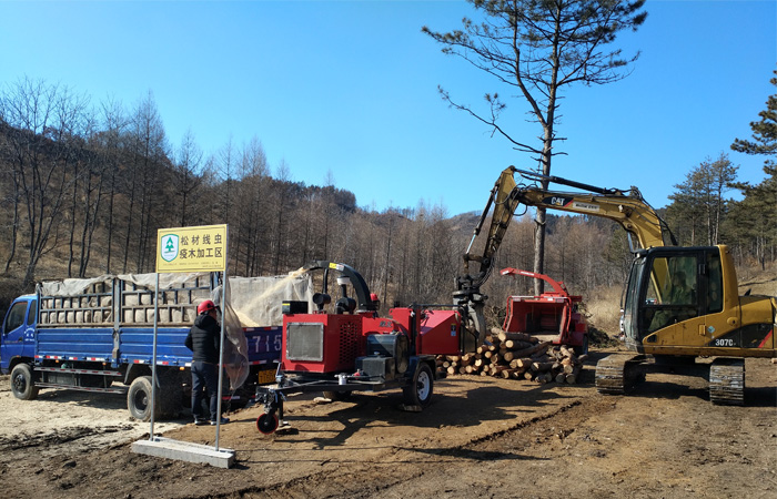 綠友集團總部森防裝備事業(yè)部、售后服務部、撫順綠友園林機械有限公司協同在撫順市大伙房實驗林場現場給參會人員講解、演示了GREENMAN CM15R病疫木粉碎機、CH25C病疫木粉碎機在山場就地粉碎處理感染松材線蟲病疫木方案,與會嘉賓紛紛記錄、拍照,索取資料,積極響應國家關于松材線蟲病疫木山場就地粉碎處理的相關政策。