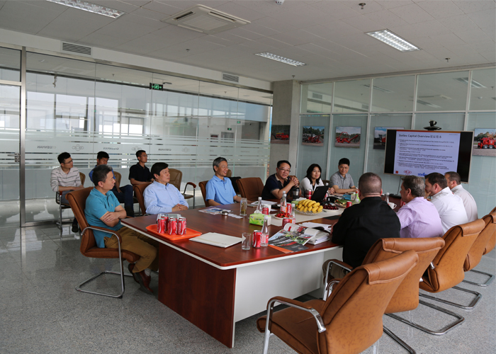 5月8-9日的綠友園,碧空如洗,清風(fēng)獵獵。綠友集團(tuán)迎來了美國木霸克公司首席執(zhí)行官戴夫?赫爾、高級副總裁約翰?福特、工業(yè)設(shè)備國際部經(jīng)理柯爾特?麥克穆倫、工業(yè)設(shè)備銷售總監(jiān)邁克爾?斯坦頓一行四人的到訪。