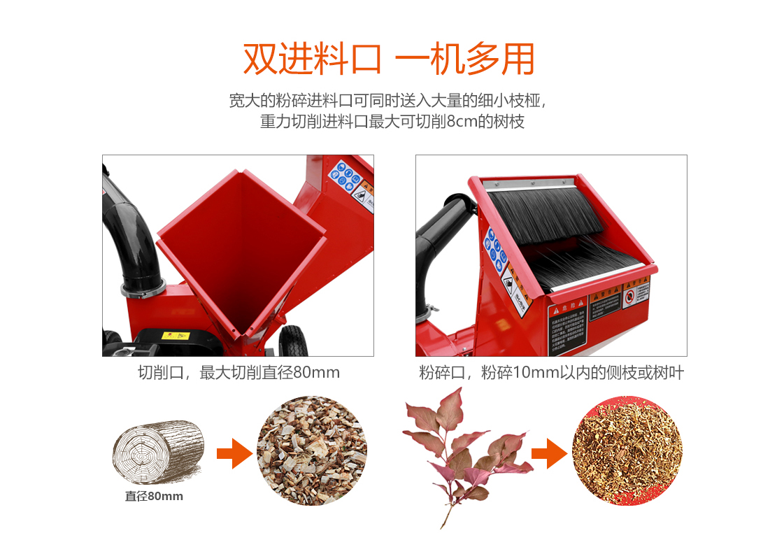 綠友小粉碎機是一款徑向進料系統(tǒng)的商用小型粉碎機,其寬大的粉碎進料口可同時送入大量的細小枝椏,重力切削進料口最大可切削8cm的樹枝,360度旋轉(zhuǎn)出料口更方便收集及清理。